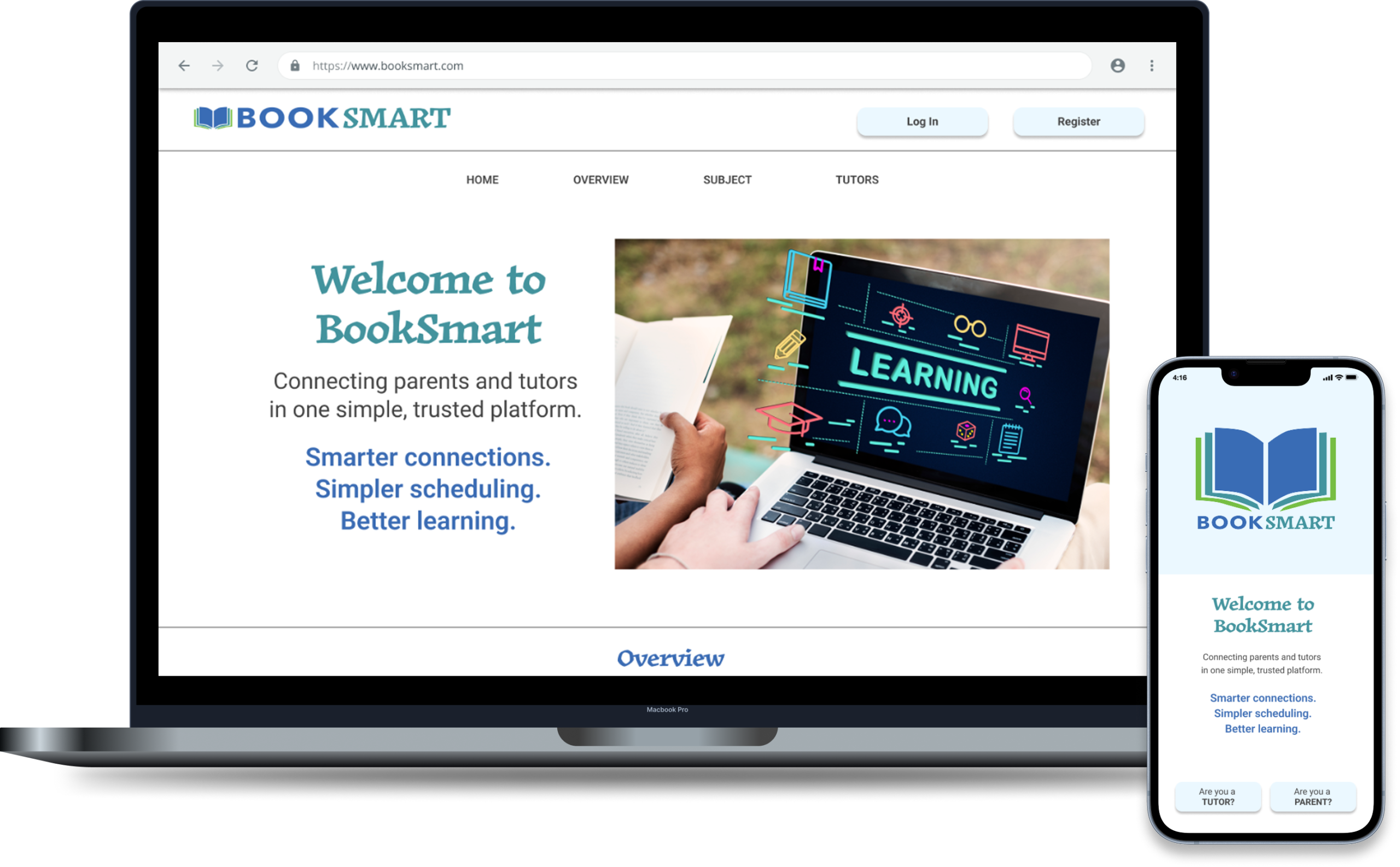 The goal of this Google Coursera project was to create a responsive website that will let parents search, schedule, pay, and confirm tutors quickly and easily without filling out exhaustive, confusing forms. BookSmart also gives tutors a simple, pre-formatted template for listing their services, prices, and availability. It will have an easily accessible dashboard for them to keep track of their students, calendar, and earnings all in one place.